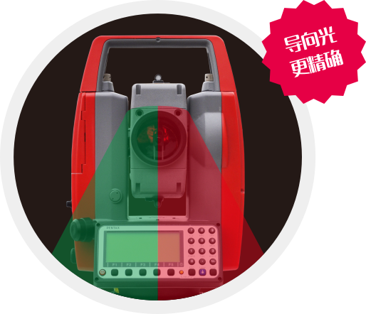 | 快速測(cè)量建 傳統(tǒng)測(cè)量按鍵在數(shù)字鍵盤區(qū)域使用不方便、不快捷;新增的側(cè)邊測(cè)量建,在觀測(cè)目標(biāo)的同時(shí)完成測(cè)量工作,大大的提高工作效率。 | 導(dǎo)向光功能 紅、綠光導(dǎo)向設(shè)計(jì),為放樣客戶量身定做,紅綠兩束導(dǎo)向光,可以指示儀器視準(zhǔn)軸的方向;使工作人員非常容易的確定瞄準(zhǔn)方向,施工不出現(xiàn)盲區(qū),大大提高放樣效率。 |